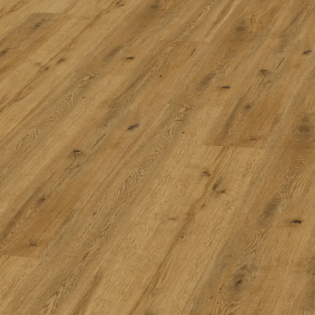 4. Nášľapná vrstva (0,4 mm): priehľadná vrstva s autentickým reliéfom povrchu pre ešte prirodzenejší vzhľad, vyššiu odolnosť a životnosť podlahy. Jej špeciálna úprava zaisťuje ostrú kresbu vzoru podlahy a priehľadná vrstva ostáva aj naďalej stále číra.